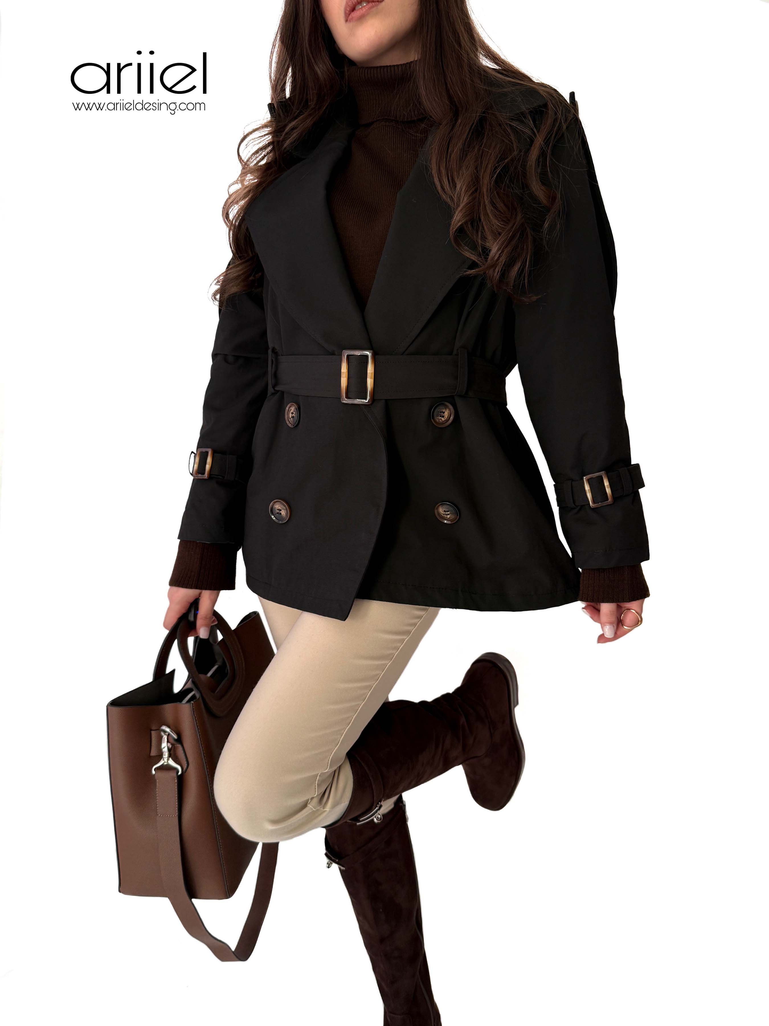 ترنچ کت کوتاه Hope  آریل دارای جنس کتان زارا می باشد .کاملا آسترکشی شده شده است.