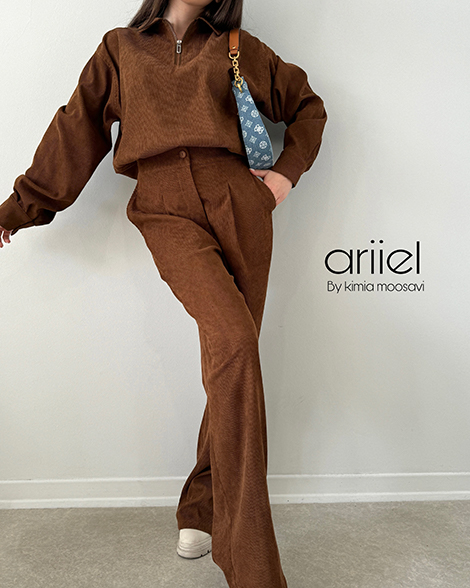 ست بلوز و شلوار روژا آریل دارای جنس کبریتی درجه یک می باشد. مناسب فصل پاییز و زمستان است.