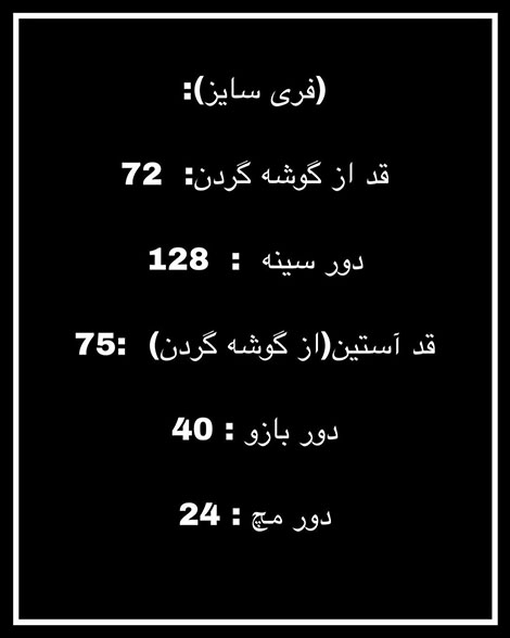 سایز شکت فری سایز میباشد که تا 44 را صد در صد ساپورت میکند و برای سایز بزرگتر با جدول سایز چک بفرمایید.