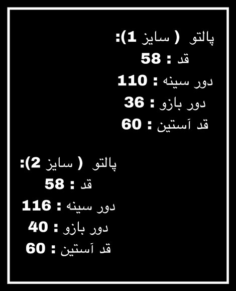 مناسب فصل پاییز و زمستان است. دارای رنگبندی و  سایز 1 و 2  می باشد.