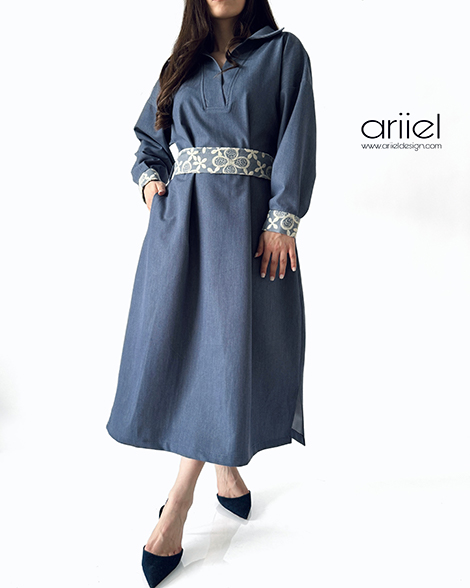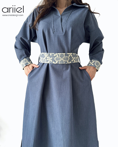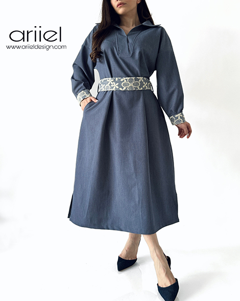 پیراهن Chloe  آریل دارای جنس کرپ گاباردین ترک و سر آستین و کمربند دانتل می باشد .مناسب فصل بهار و تابستان است.