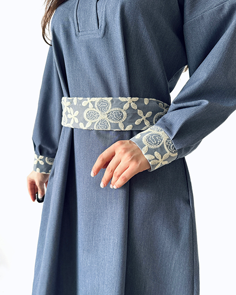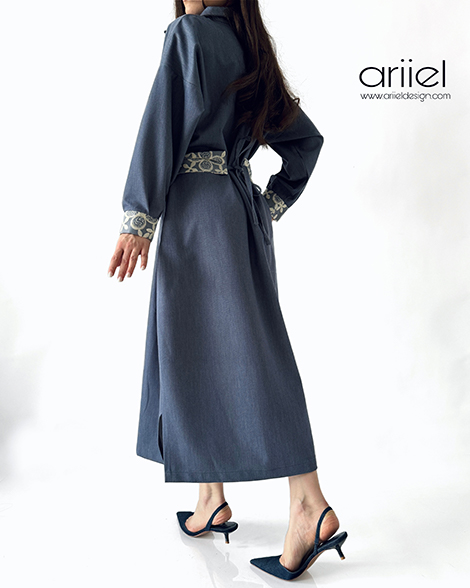 کرپ گاباردین ترک و سر آستین و کمربند گیپور