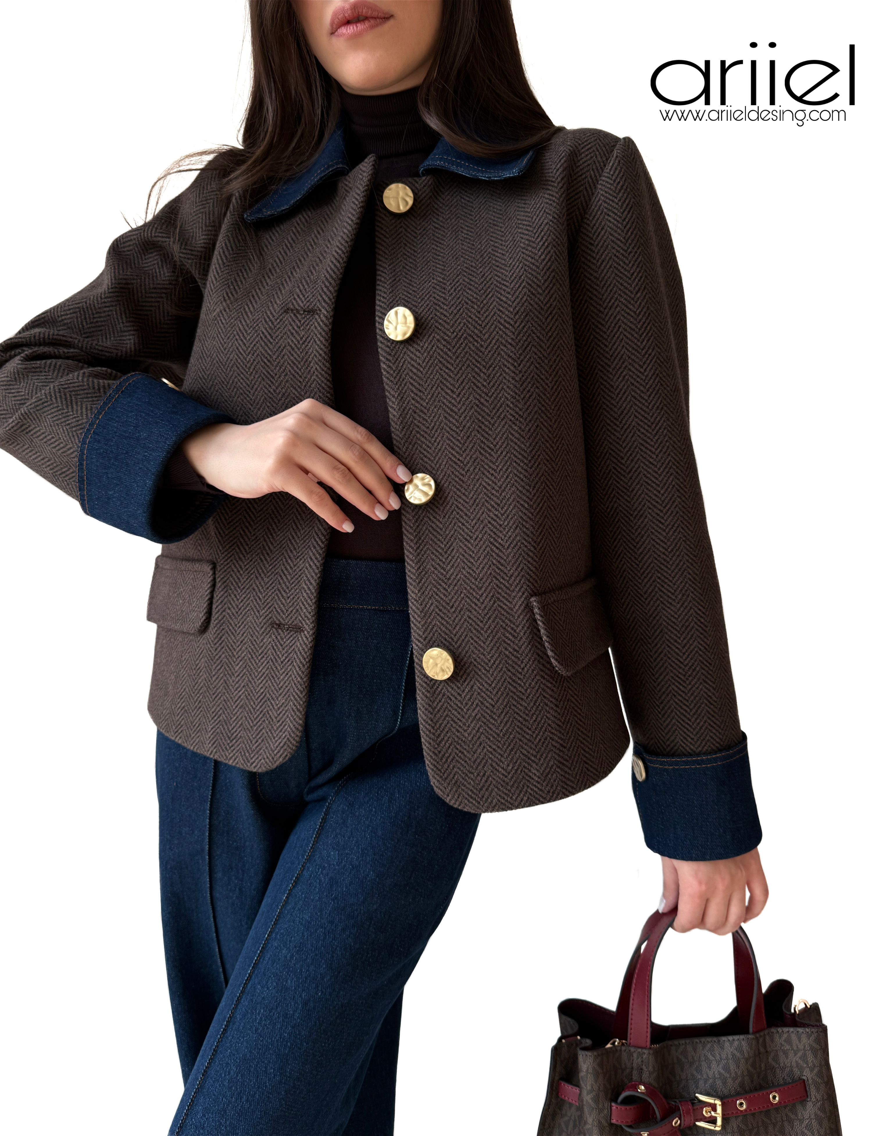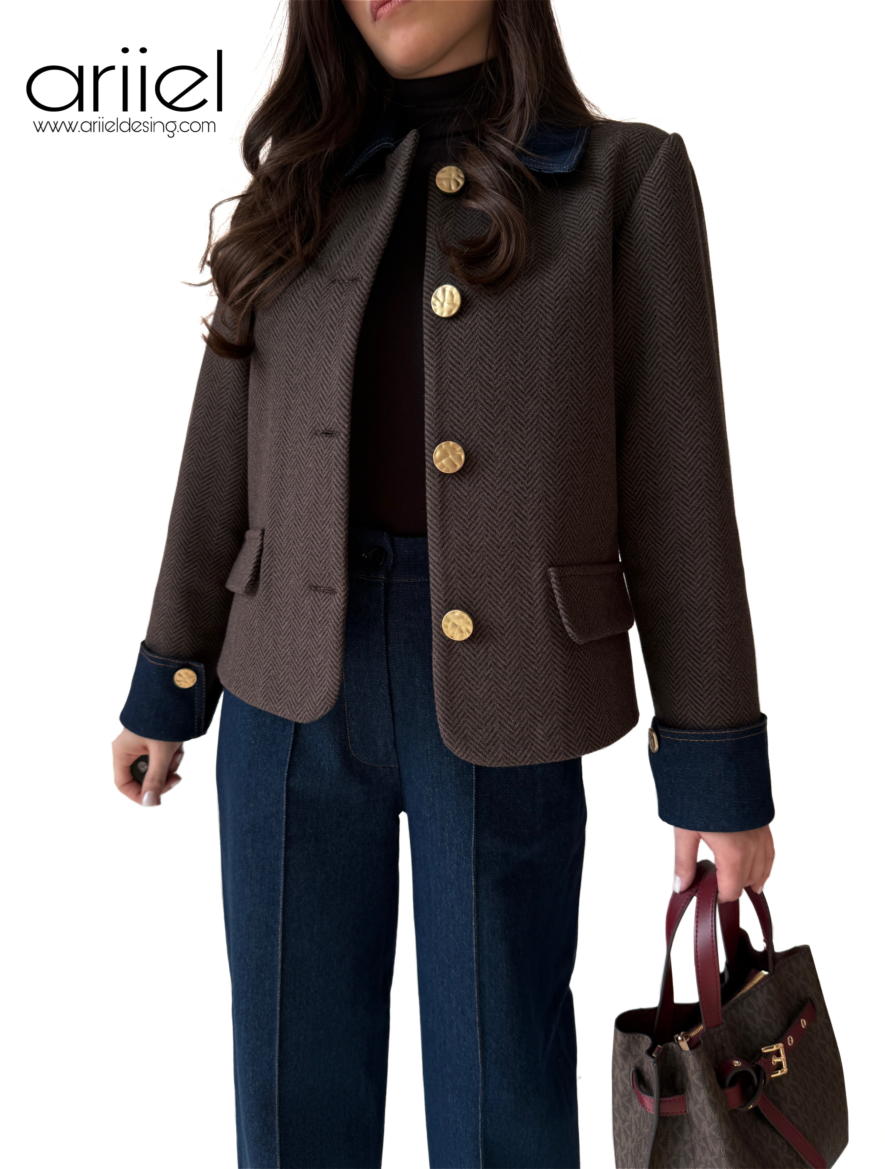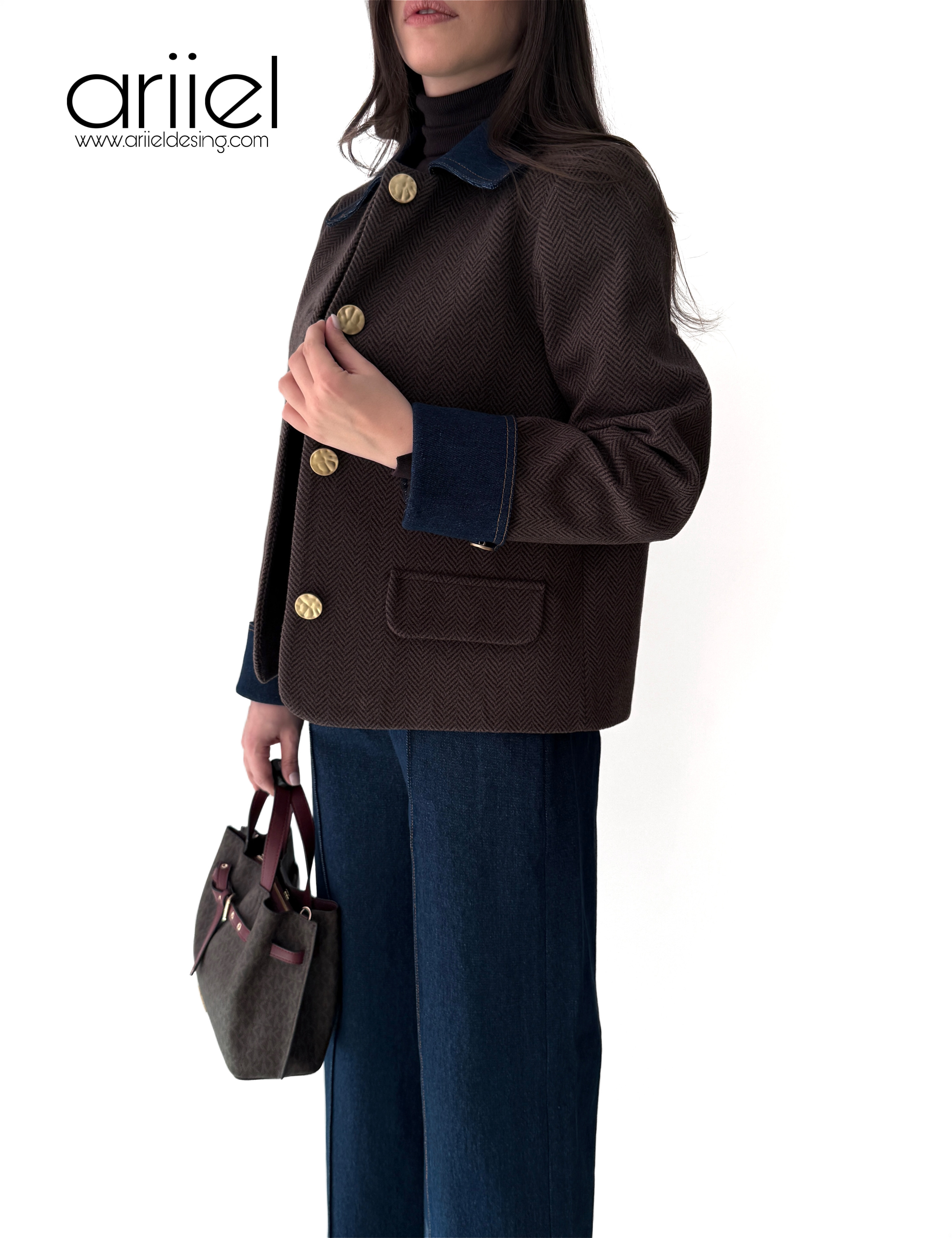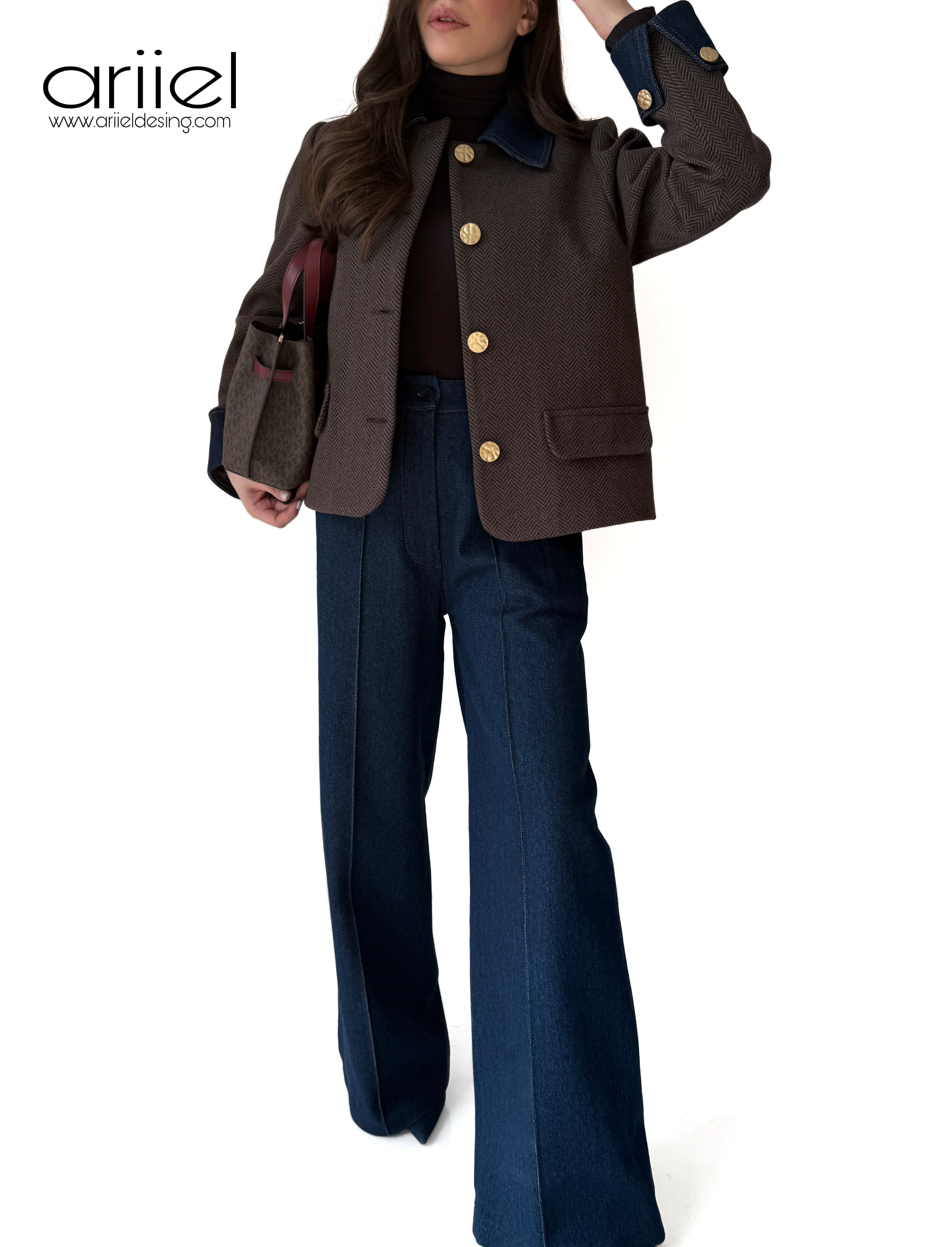 کت و شلوار Bella آریل دارای جنس جین شسته شده ترک گرم بالا و فوتر جناغی می باشد .مناسب فصل زمستان است.