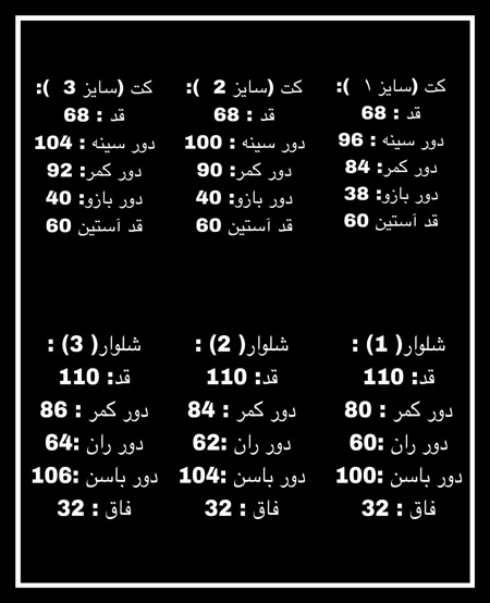 سایز 1 و 2 و 3 ( جدول سایز در قسمت سایز من چنده)