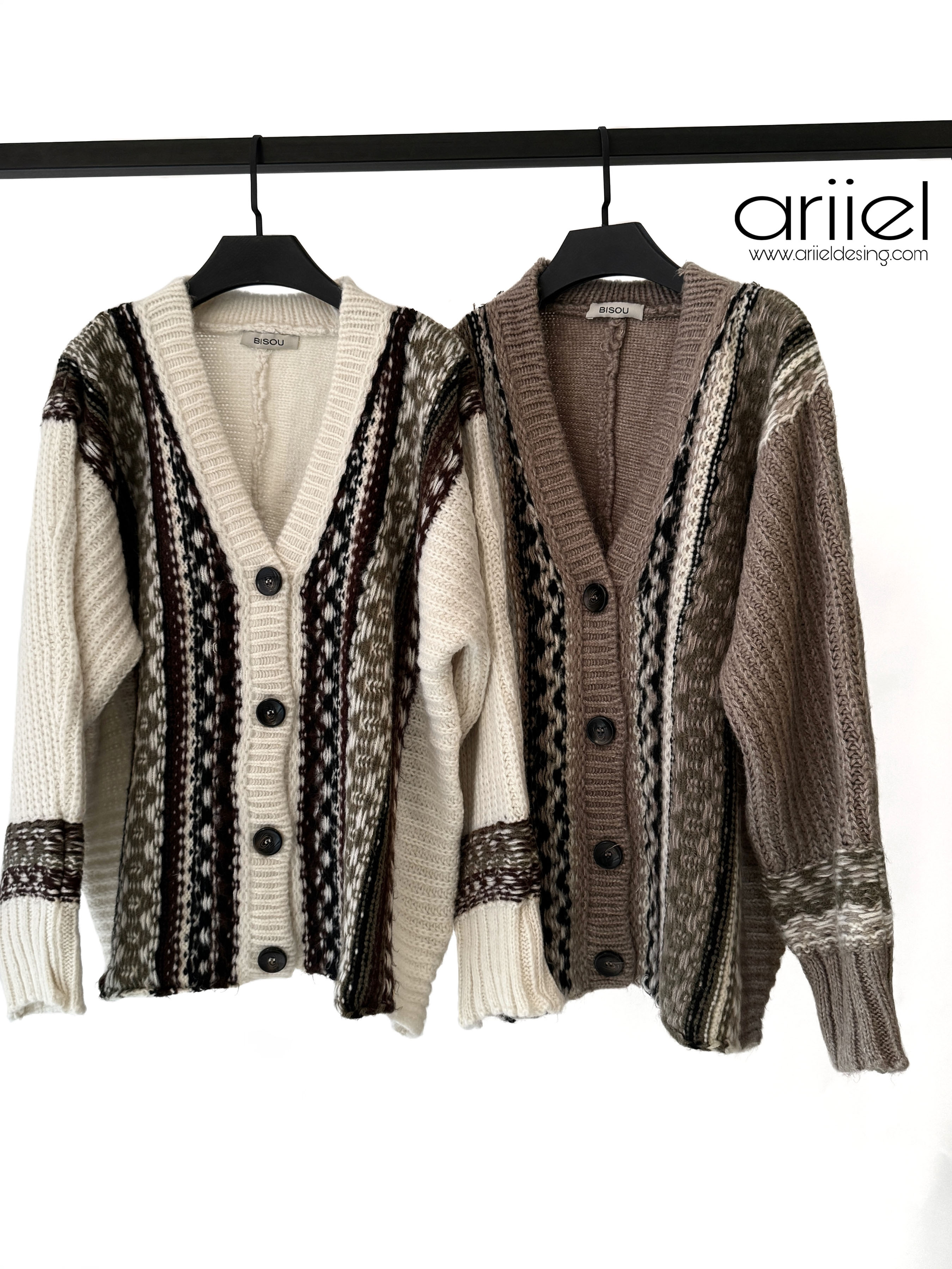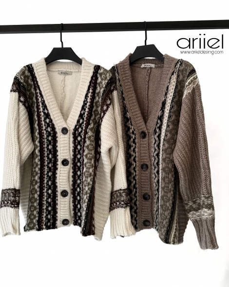 Cardigan بافت آریل دارای جنس بافت پشمی می باشد .مناسب فصل پاییز و زمستان است و فری سایز میباشد.